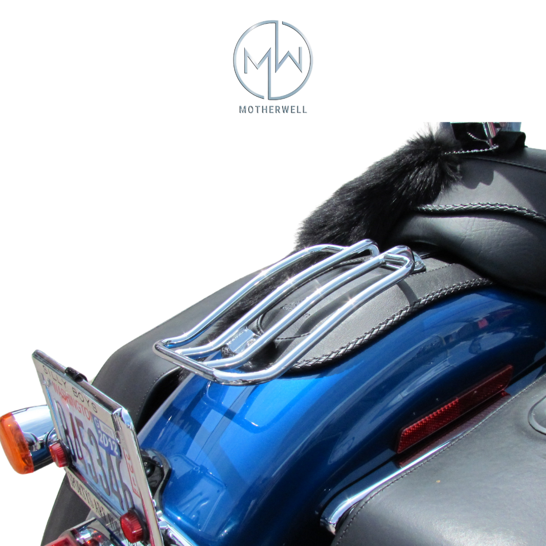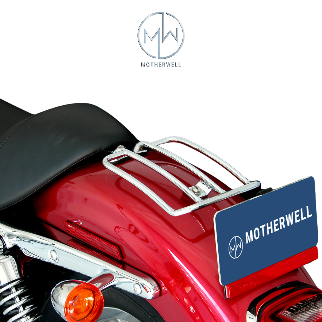 Motherwell's customized solo motorcycle luggage rack isn’t just bad to the bone, it’s useful and long-lasting. It follows the contours of your bike and with its simple mounting system, there's no need for expensive mounting hardware.